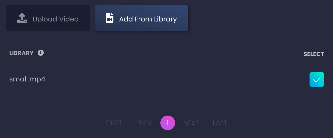 Use the navigator to page through your library if you have lots of uploaded videos.