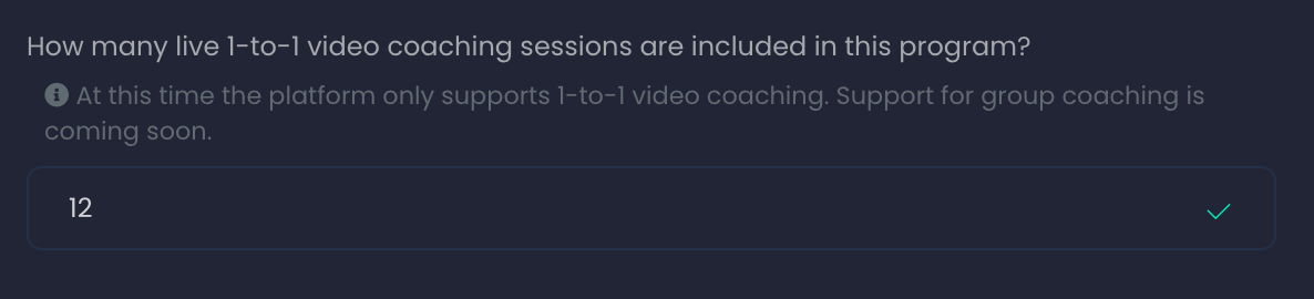 This is where you set the total number of sessions that are included in your program. If a client purchases the full program, this is the number of sessions that they are paying for. More on pricing below.